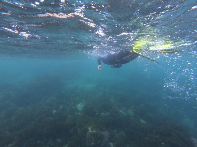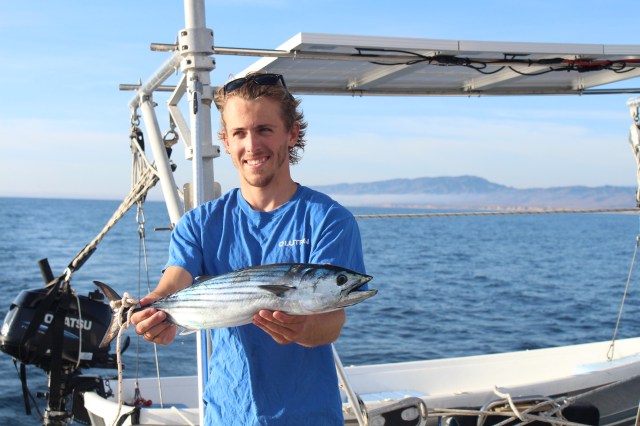 Gabert here, being forced to schwing some blog action. Yesterday, after motoring roughly 11 hours across dead glass ocean, the jagged cliffs of Catalina island materialized out of the grey sky. The northwest side of the island juts straight out of deep ocean, strikingly resembling a huge gorilla. Steep talus fields comprise a majority of the island’s coast, rising hundreds of feet straight up into the fog.